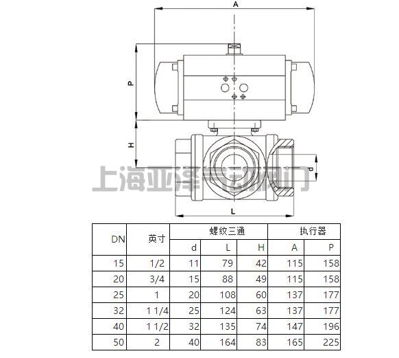 氣動三通球閥由內螺紋三通球閥和氣動執行器組成,體積小,結構簡單。分為L型、T型,能實現:換向、分流、合流、混流作用。四閥座密封三通球閥具有造型美觀、結構緊湊合理,它不僅可實現介質流向的切換,也可使三個通道相互連通,同時也可關閉任一通道,使另外兩個通道連通,靈活控制管路中介質的合流或分流。 螺紋絲扣氣動三通球閥